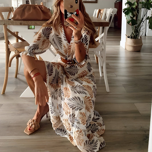 Til salg På lagerEleni™ - Stilren maxiklänning med knytband | LIMITED EDITION